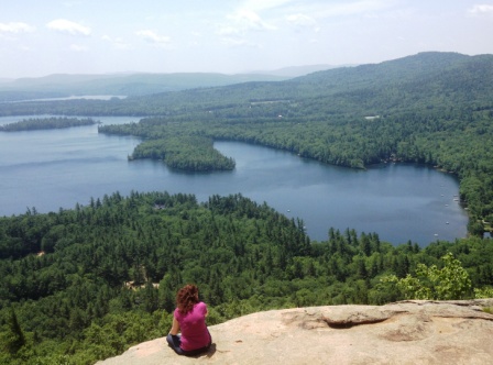 Driving up toward the picturesque town of Holderness, Rattlesnake Mountain is a hike with a view of Squam Lake. Famous for being the locale used for “On Golden Pond,” Squam Lake sits in sapphire brilliance below Buster and me.